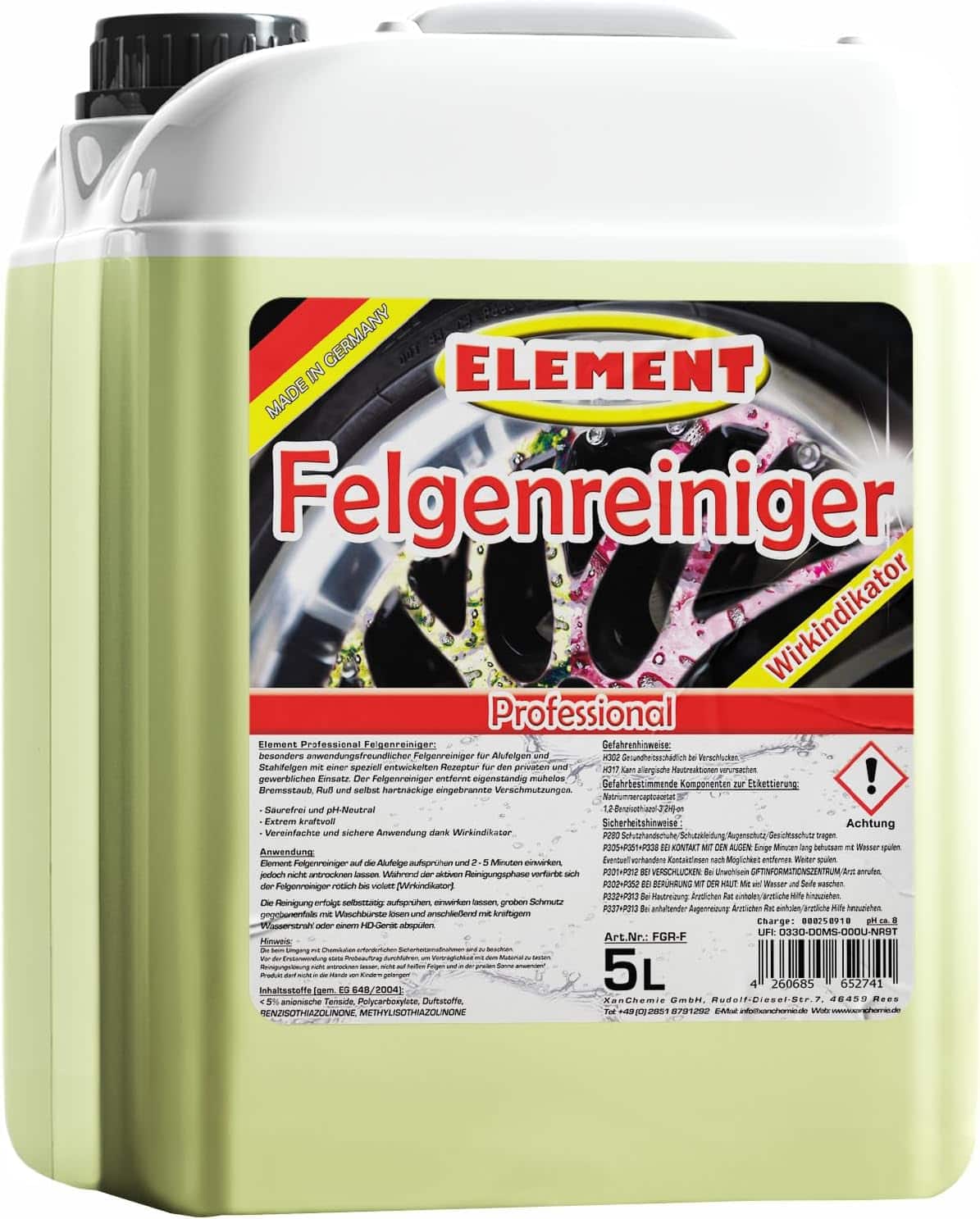 Element Rim Cleaner for Rim Care, Professional Rim Cleaner, Efficient & Acid-free Cleaning for Alloy and Steel Rims, Active Indicator, pH Neutral and Acid-free, 5 Litres