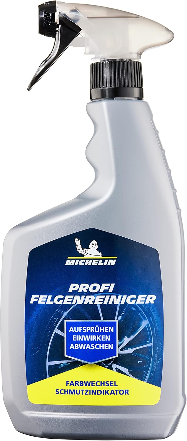 Are you looking for a high-quality rim cleaner that provides simple, safe and effective radiant results? The MICHELIN professional rim cleaner presents you with the solution. It quickly and effortlessly removes even the most stubborn dirt such as burnt on brake dust, oil and rubber residues as well as other road dirt. The acid-free MICHELIN rim cleaner is suitable for all steel and alloy rims + painted, chrome-plated, polished and matte rims. The reddish discolouration of the cleaner signals the active removal of dirt from the rim and thus allows optical control of its effectiveness.